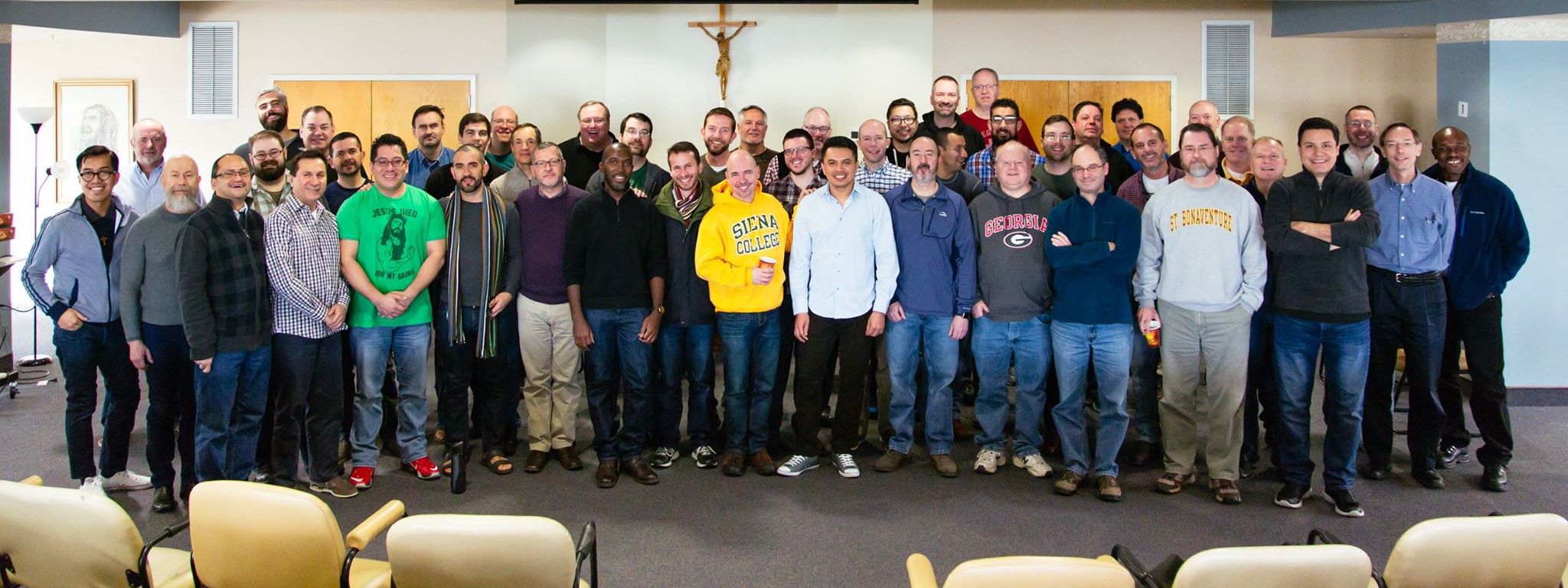 - We don’t have to get along to be brothers. While the love of Jesus and his Church certainly bound the men in the room, very little else did. In the fifty guys present, it was hard to miss how diverse we are at times when it comes to country of origin, culture, political leaning, vision for the Church, definition of friar life, ideal lifestyle, and personality. It was hard to miss how we don’t get along sometimes. It was hard to miss how, dare I say, certain guys actually don’t like each other. Gasp! Sounds kind of like… I don’t know… every other situation in the world! While some would point to conflict and division as signs of weakness, I see it as one of the strongest points of witness that we have to offer the world. Here we are, men with personalities, egos, issues, etc., and yet we’re willing to come together for something greater rather than giving up on the people and things that annoy us. Do we do it perfectly? Absolutely not. But what I saw in this gathering was enough to brag about: we have at least fifty men that are willing to at least try to follow Jesus in his mission, accepting each other, not because we want to but because Jesus did it first.