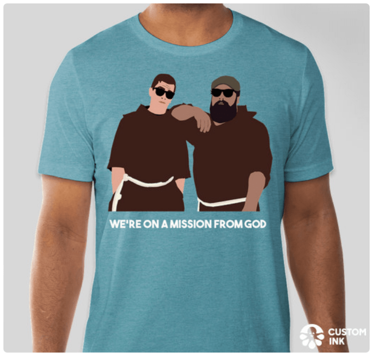 Stickers are cool, but t-shirts are COOLER. Because we really want to get the word out about our tour, we’ve designed these t-shirts for your purchase. You can find them here, and they’re arrive in early May. The cost is $13.22, plus shipping, coming to a total of $20. We’re sorry we couldn’t subsidize the cost, but they’re being given to you at cost. (Technically Fr. Tito and I lowered the price by agreeing to order 500 of them, so we’re on the hook for that many regardless of how many sell.)